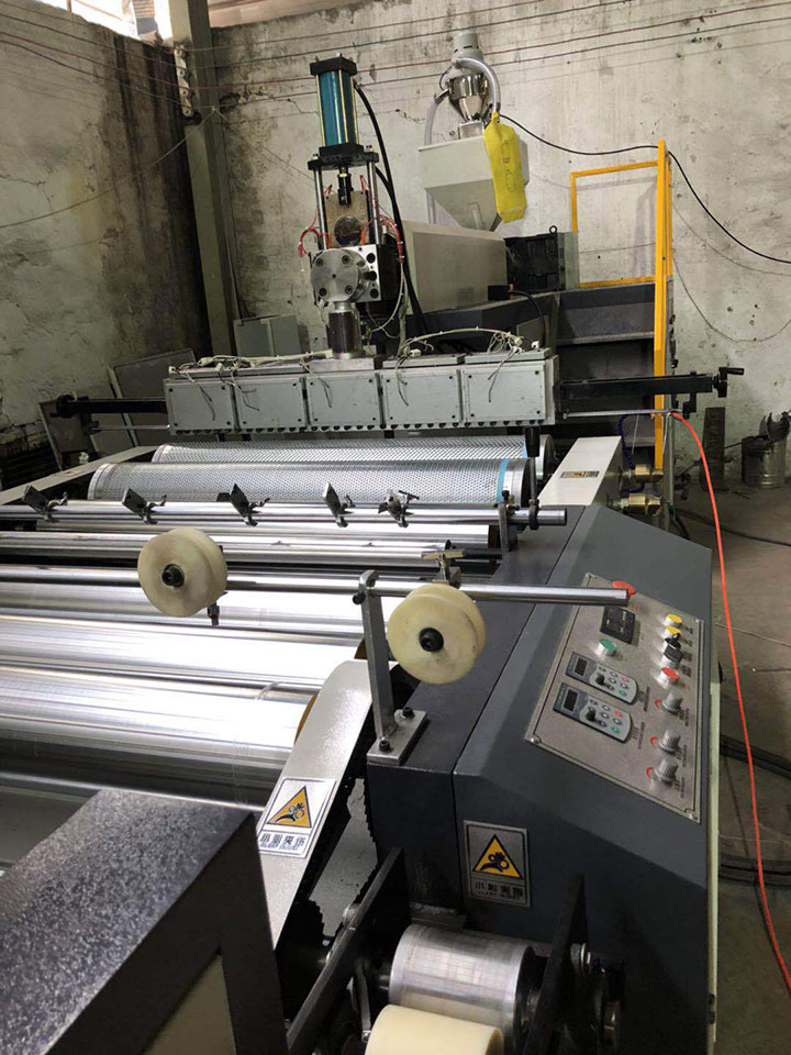 本機(jī)主要由擠出機(jī)、真空氣泡成型機(jī)構(gòu)、點(diǎn)斷機(jī)構(gòu)、收廢機(jī)構(gòu)、電氣控制系統(tǒng)七大主要部件組成,實(shí)現(xiàn)原料從加料口加入,直至成品收卷自動控制的機(jī)電一體化產(chǎn)品。